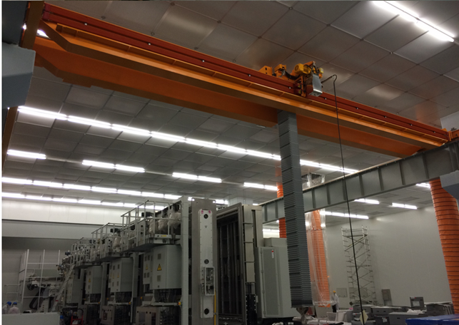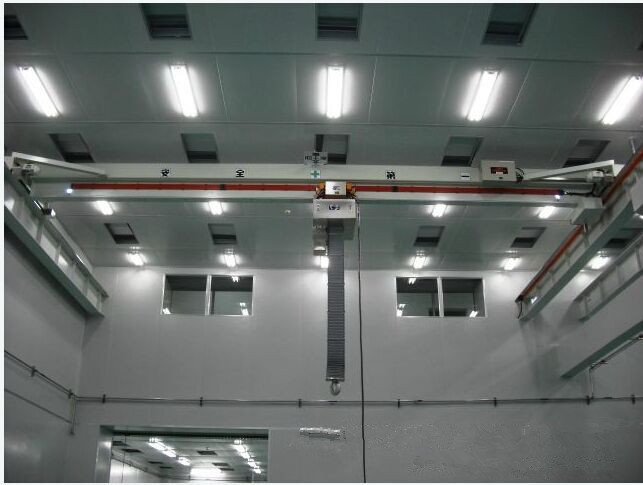 無塵室起重機以葫蘆作為起升機構(gòu),結(jié)構(gòu)簡單,安全性能好,維護方便,有效提高起吊高度。