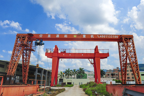 門式起重機(jī)是橋 式起重機(jī)的一種變形,又叫龍門吊。主要用于室外的貨場、料場貨、散貨的裝卸作業(yè)。它的金屬結(jié)構(gòu)像門形框架,承載主梁下安裝兩條支腳,可以直接在地面的軌道上行走,主梁兩端可以具有外伸懸臂梁。門式起重機(jī)具有場地利用率高、作業(yè)范圍大、適應(yīng)面廣、通用性強(qiáng)等特點(diǎn),在貨場得到廣泛使用。